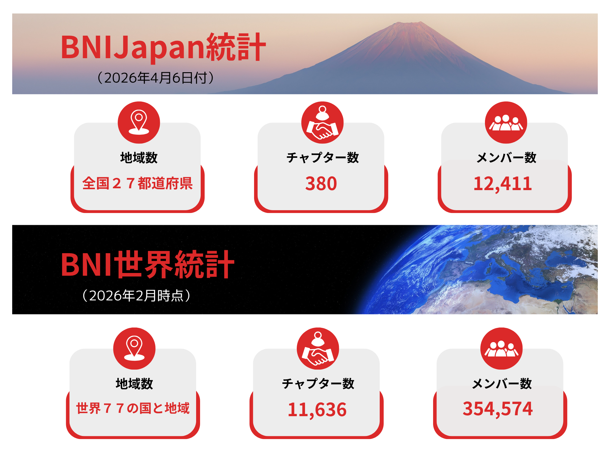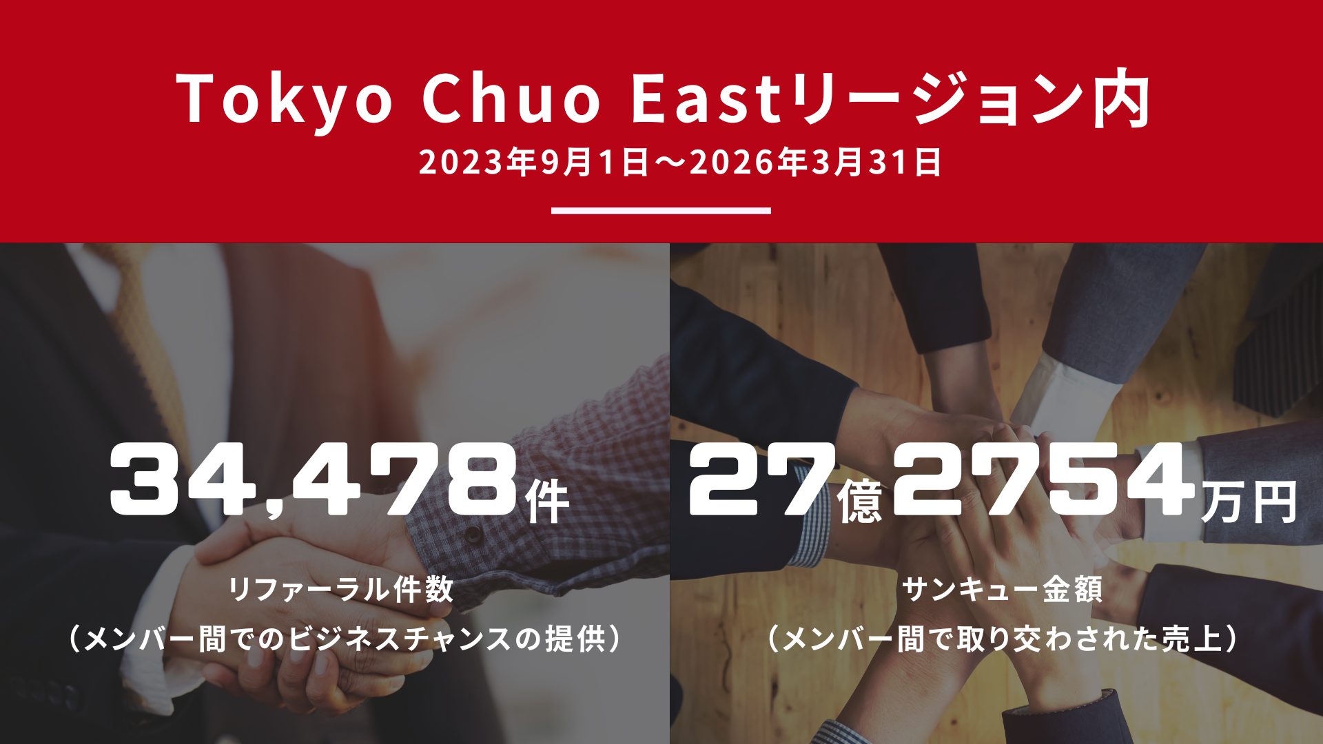 BNIのメンバーは、数十人の経営者や事業者で構成される「チャプター」と呼ばれるグループで信頼関係を築き、お互いにリファーラルを提供します。リファーラルとは、質の高いビジネスにつながる紹介のことです。BNIのメンバー間では年間何百万件ものリファーラルが交わされ、約1兆円相当のビジネスが生み出されています。BNIのメンバーであることは、信頼できる営業チームを持っているのと同じです。